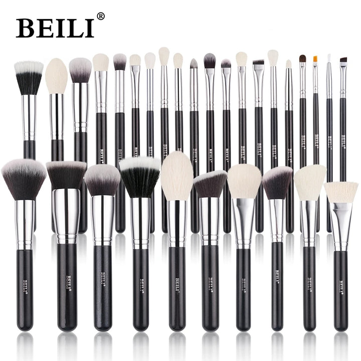 • 30-piece set featuring a mix of 100% natural goat hair, synthetic hair, and pony hair brushes.