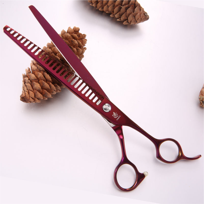 Transform your pet grooming routine with our Professional 8-Inch Titanium-Coated Thinning Shears. Designed for both professional groomers and pet owners who demand the best, these shears are crafted from premium JP440c stainless steel, ensuring unmatched sharpness and durability. The stunning purple titanium coating not only adds a layer of protection against corrosion but also gives these shears a unique and stylish appearance. Whether you’re thinning, blending, or finishing your dog’s coat, these shears provide the control and precision needed to achieve flawless results.