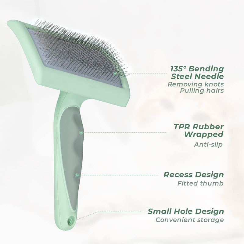 Your pet deserves the best care, and the Professional Pet Slicker Brush is the perfect tool to keep their coat looking and feeling its best. Designed for both dogs and cats, this grooming brush effectively removes loose hairs, knots, and tangles while also stimulating the skin, promoting a healthy, shiny coat. The 135° oblique angle needle design ensures deep penetration into the fur without damaging or scratching your pet’s skin, making grooming a comfortable experience for both you and your furry friend.