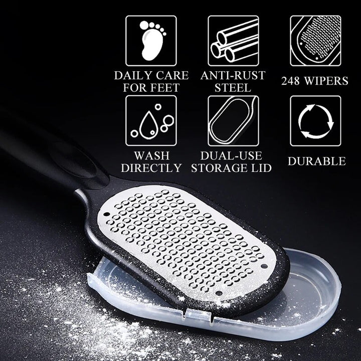 Discover the secret to effortlessly smooth and soft feet with our Professional Stainless Steel Foot File. Designed for comfort and efficiency, this tool is a must-have for anyone looking to rejuvenate their feet's skin. Ideal for both personal and professional use, our foot file tackles dry, rough, and calloused skin, ensuring your feet feel as good as they look.