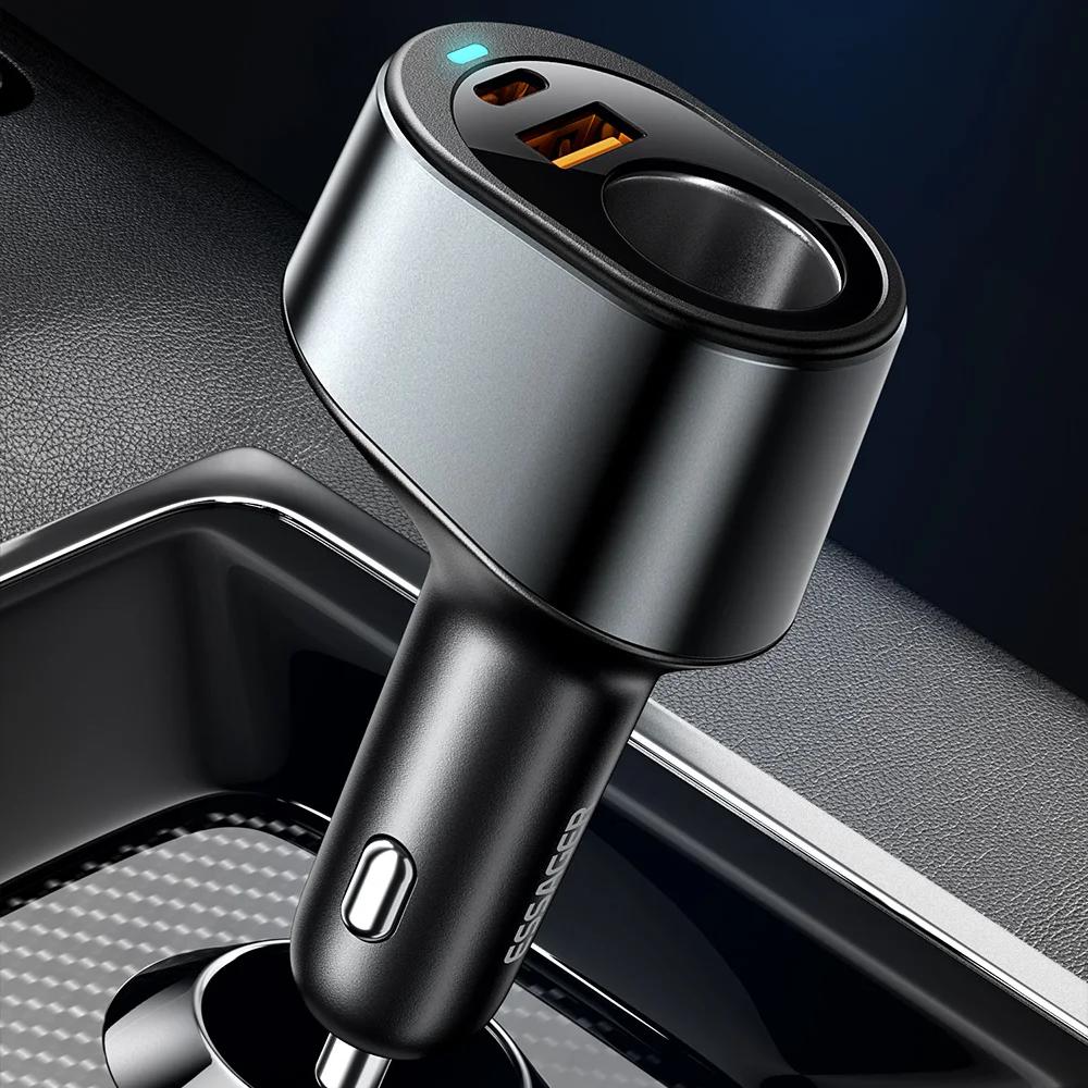 130W Super Fast Multi-Port USB & PD Car Charger with Cigarette Lighter Socket