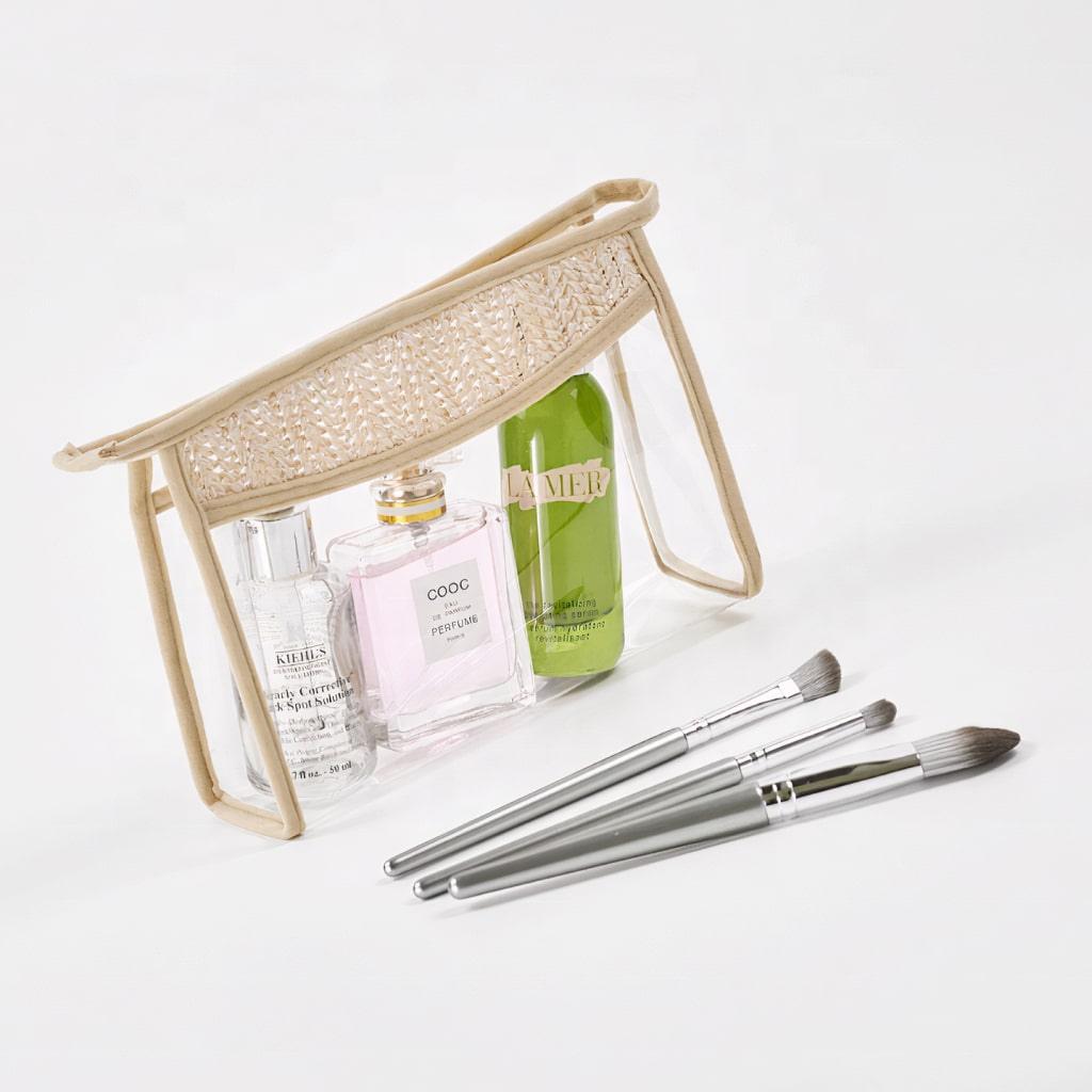 Crafted with care, this toiletry bag features a sleek construction thanks to transparent PVC material and superior weave fabric.