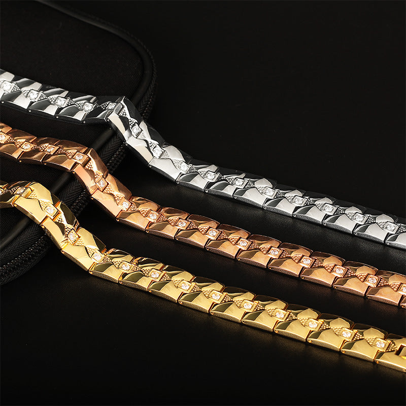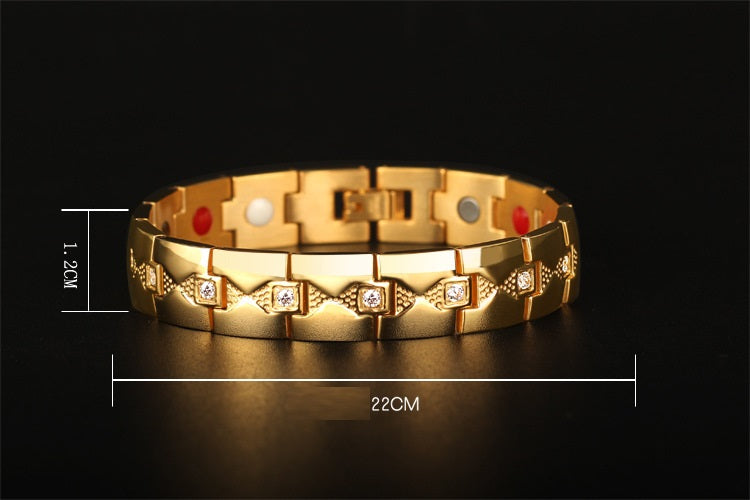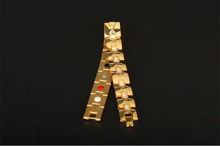 European And American Domineering Men's Titanium Steel Bracelet Diamond Plated Gold Magnet Fashion Stainless Ornament