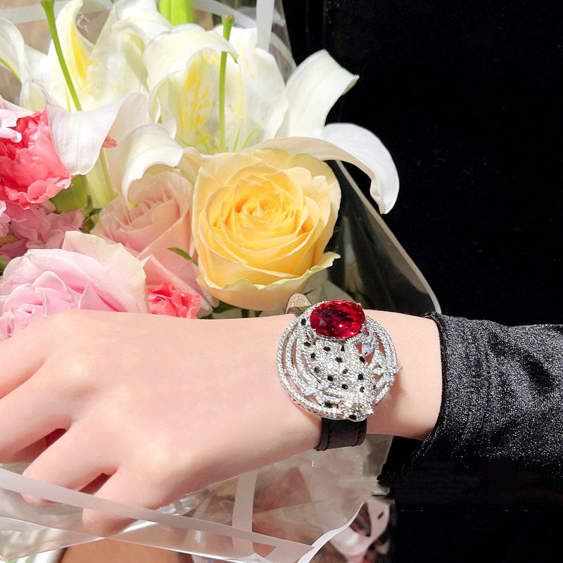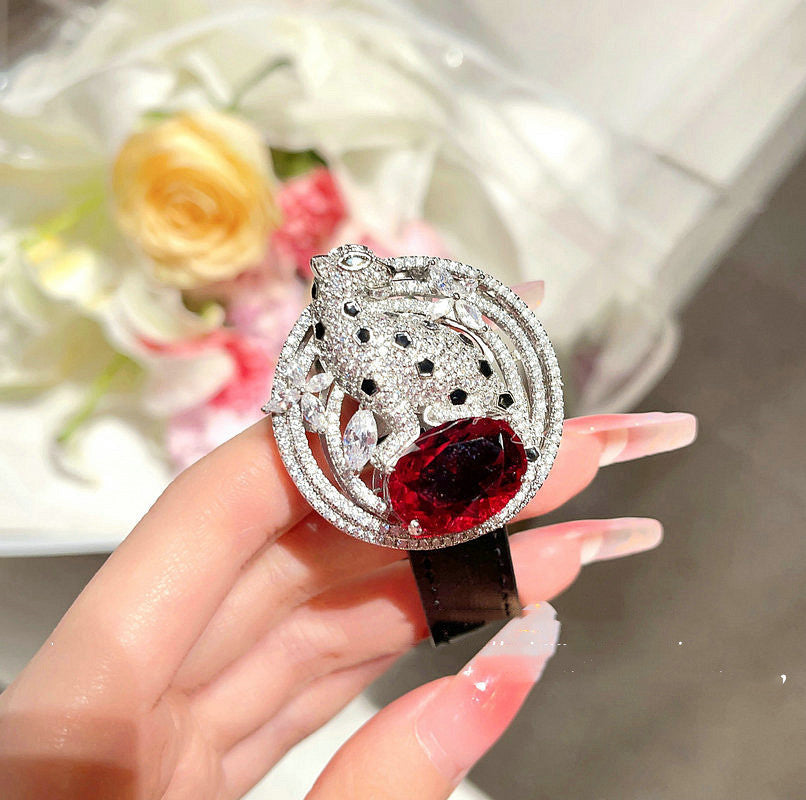 Color: 532Z disc cheetah egg-shaped zircon PU leather bracelet