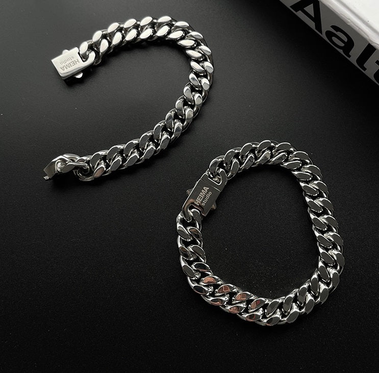 Hip Hop Simple Heavy Industry Texture Cuban Bracelet For Men