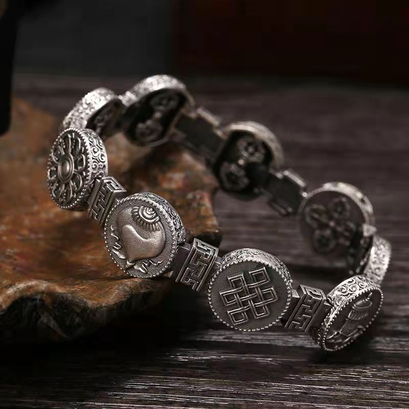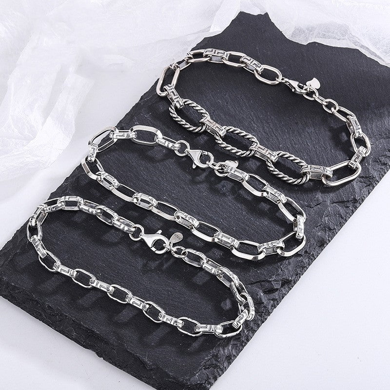 S925 Silver Bracelet Classic Great Wall Print Personality Punk Style