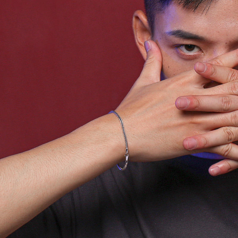 S925 Silver Bracelet Men's Cool Simple And Versatile