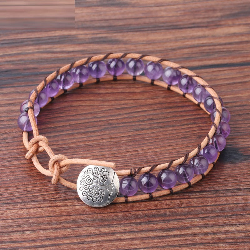 Fashionable Cowhide Rope Natural Crystal Beaded Jewelry