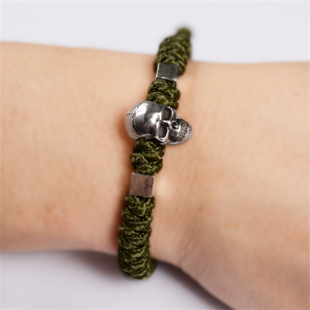 Skull 999 Silver Handwoven Men's Jewelry Bracelet