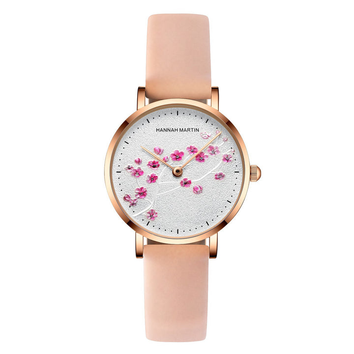 Rose Gold Plum Blossom Flower Student Ladies Watch