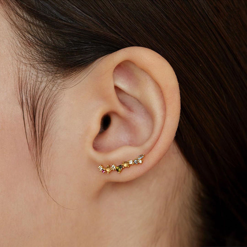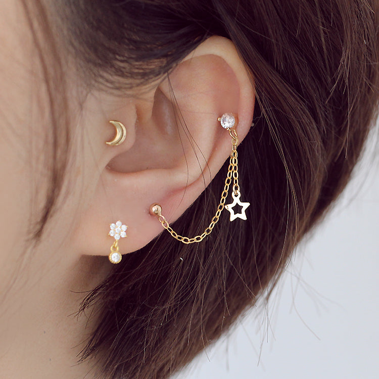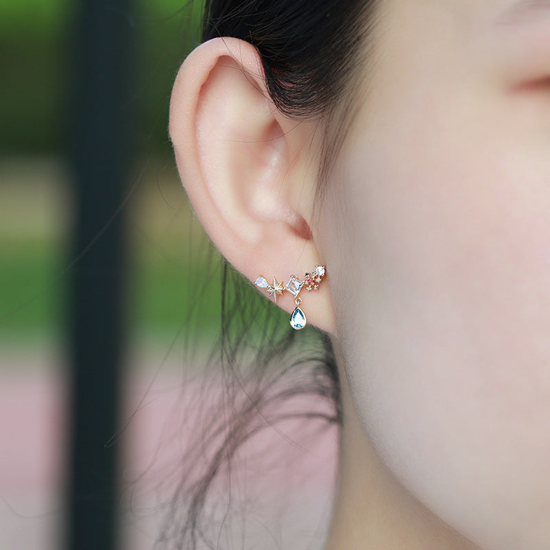 Love Asymmetric Zircon Earrings Small 925 Silver Needle