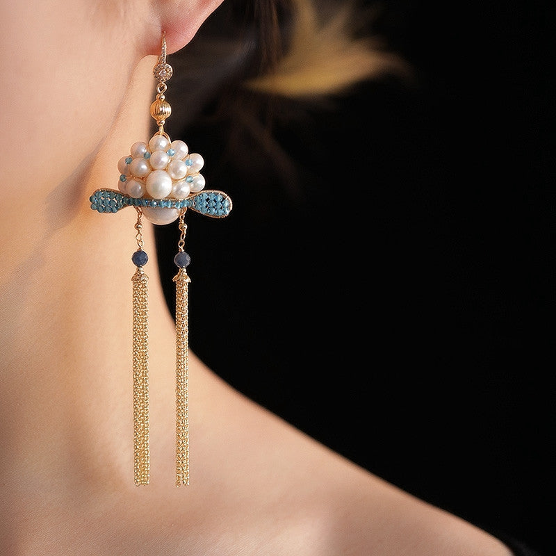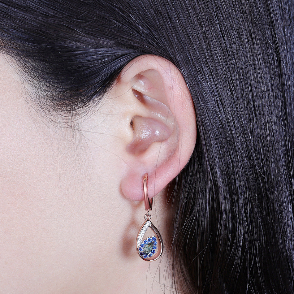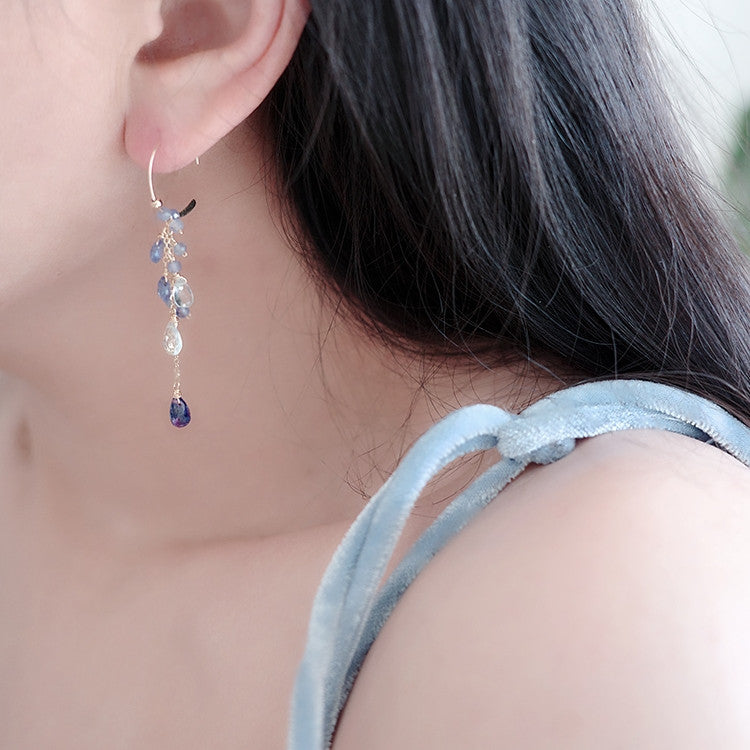 Natural Tanzanite Sea Blue Asymmetric Earrings