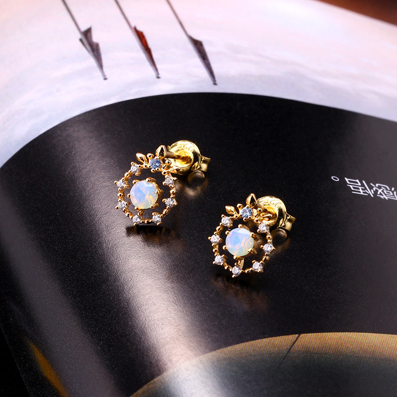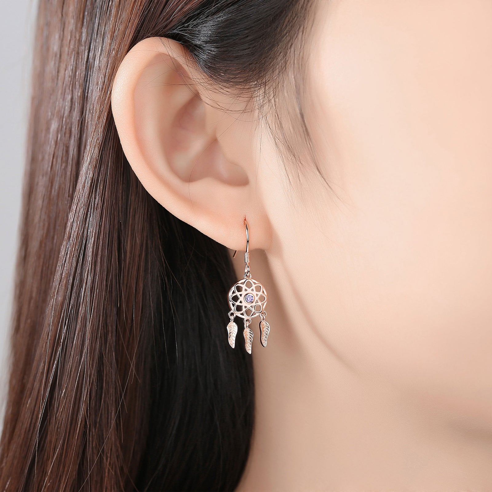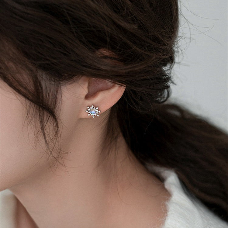 925 Silver Needle Blood Rose Liquid Zircon New Year Ear Ornaments