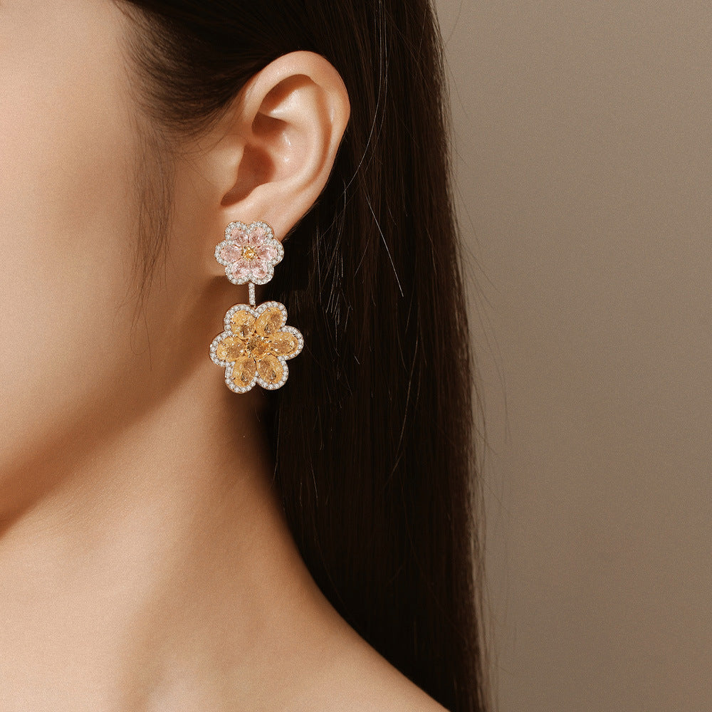 Superflash Zircon Multi-layer Three-dimensional Elegant Earring