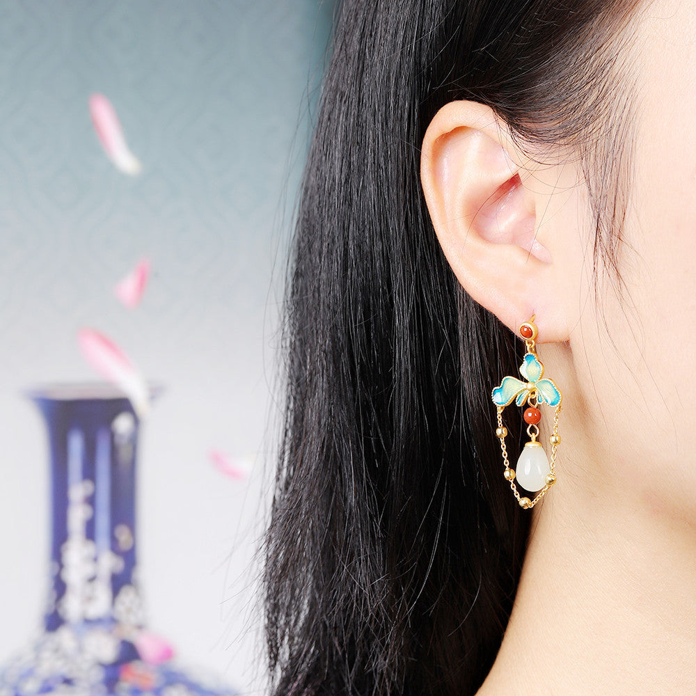 Women's Senior Sterling Silver Hetian Jade Earrings