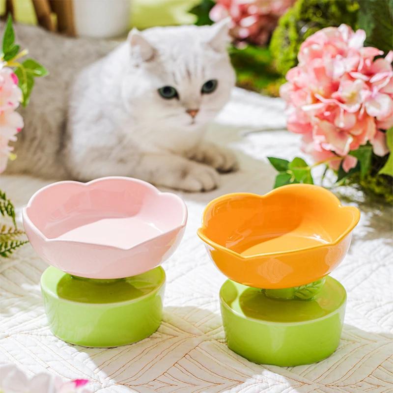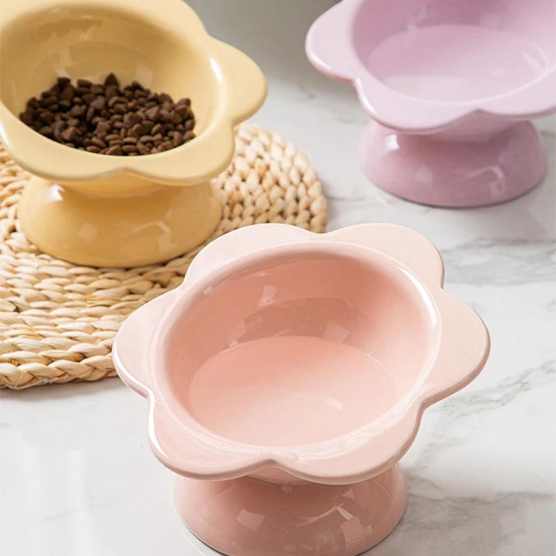 Elevated Ceramic Flower Cat Bowl