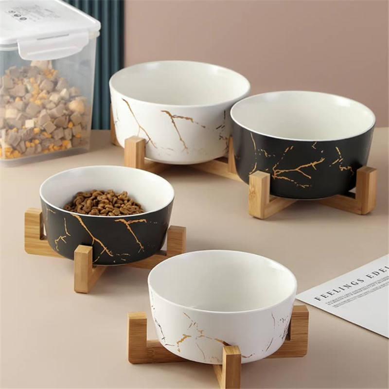 Elegant Marble Pet Bowl with Bamboo Stand