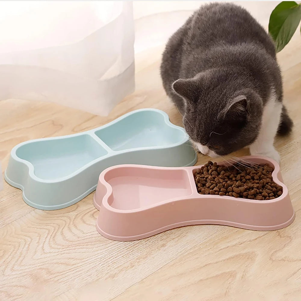 Macaron Colored Bone-Shaped Pet Double Bowl