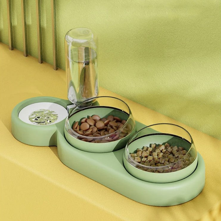 Automatic Pet Feeder with Tilted Double Bowls and Water Fountain