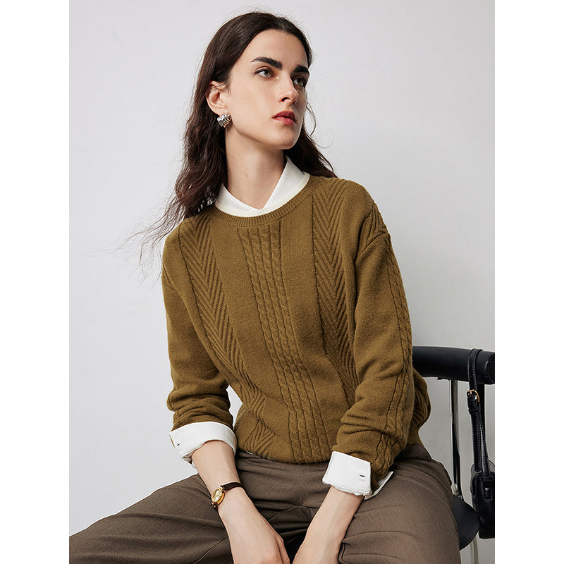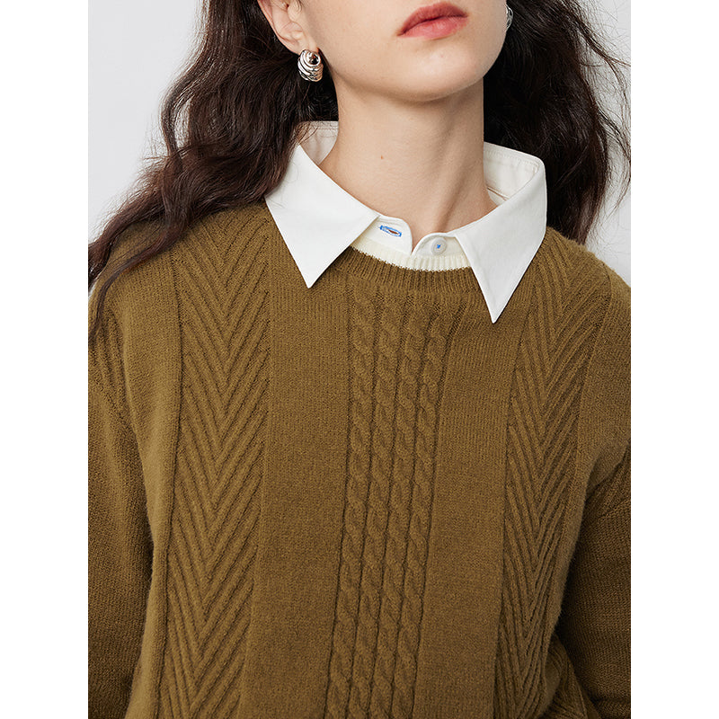 Women's Contrast Color Twisted Pattern Pullover Sweater