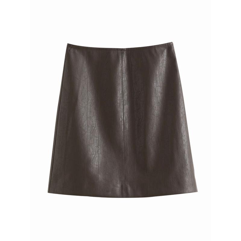 Women's High Waist Brown Leather Skirt