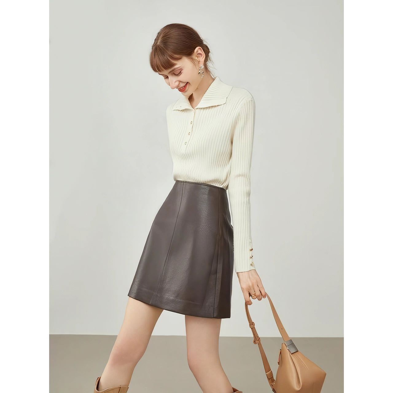 Our Women's High Waist Brown Leather Skirt is not just about looking good; it’s about feeling confident and empowered. Here’s why it stands out: