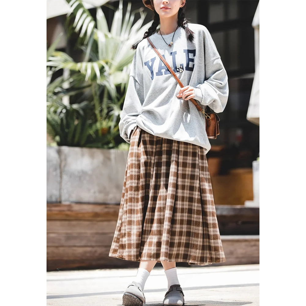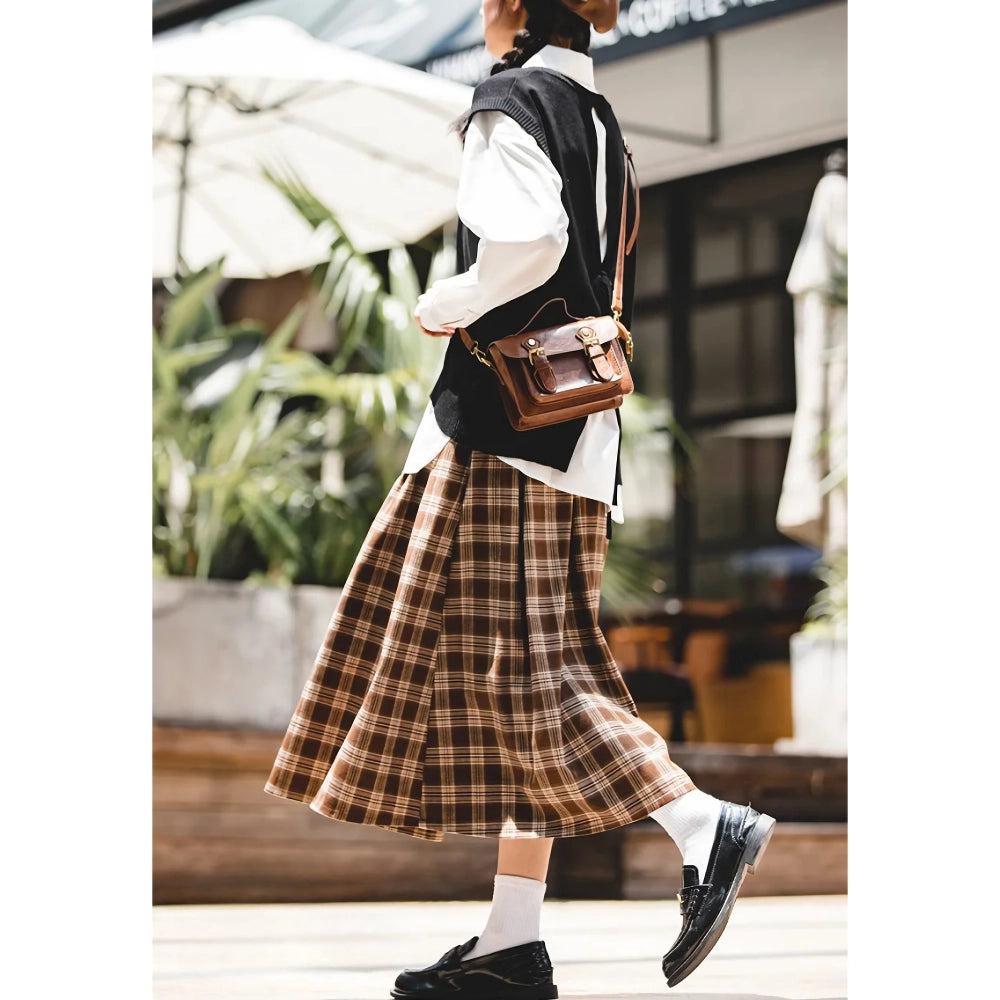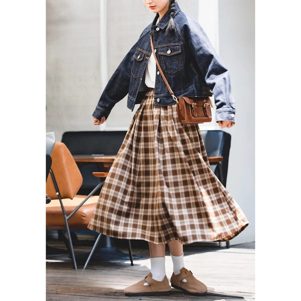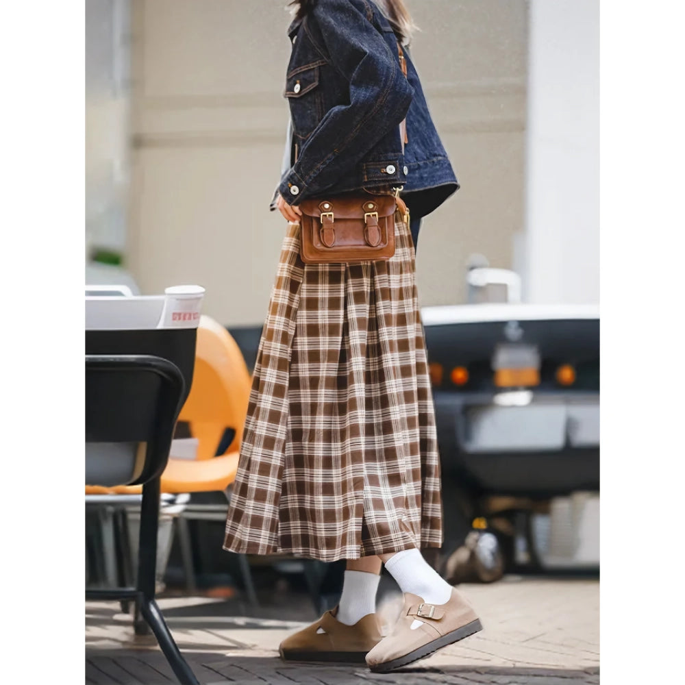 Embrace the charm of autumn with our Women's Vintage American Plaid Pocket Half Skirt. This high-waist, long umbrella skirt combines classic plaid patterns with modern comfort, offering a stylish and relaxed fit that flatters every silhouette. Perfect for any occasion, this skirt effortlessly transitions from casual outings to more formal events, making it a versatile addition to your wardrobe. Designed to provide both comfort and style, it's the ideal piece for the fashion-conscious woman.