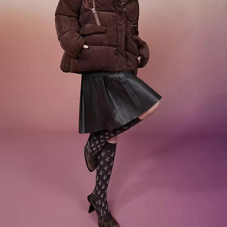 Mid-Length Brown PU High Waist Skirt - Elegant Autumn Style