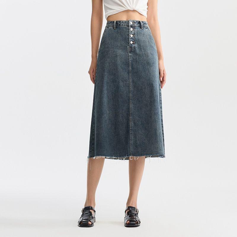 Vintage Washed Asymmetrical Denim A-line Skirt for Women