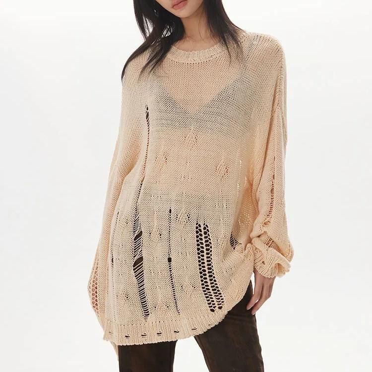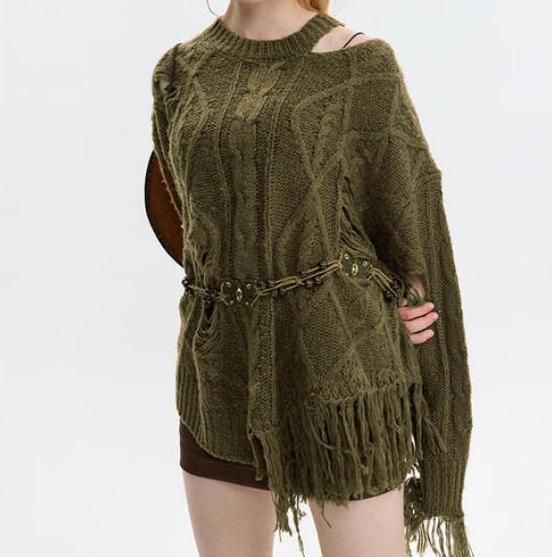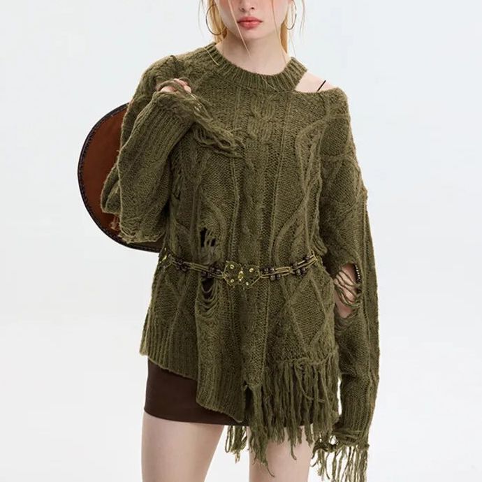 Hollowed-Out Tassel Loose Fit Knit Sweater