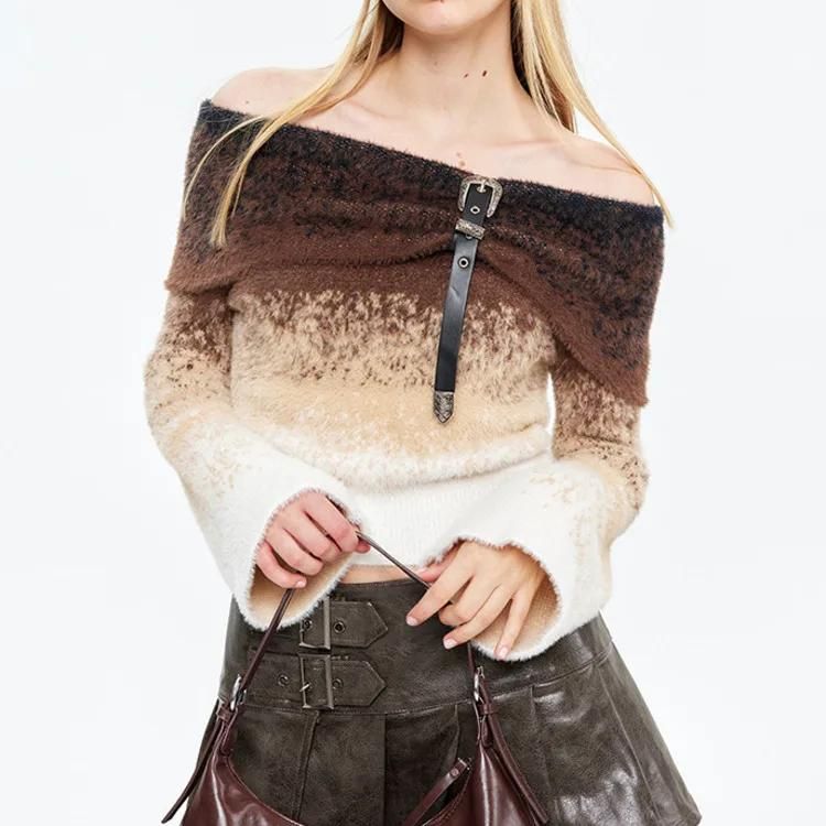 Chic Square Collar Flare Sleeve Knit Sweater for Women