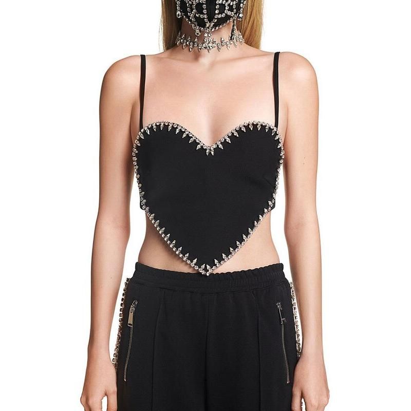 Summer Fashion Sexy V-Neck Patchwork Diamond Zipper Tank Top