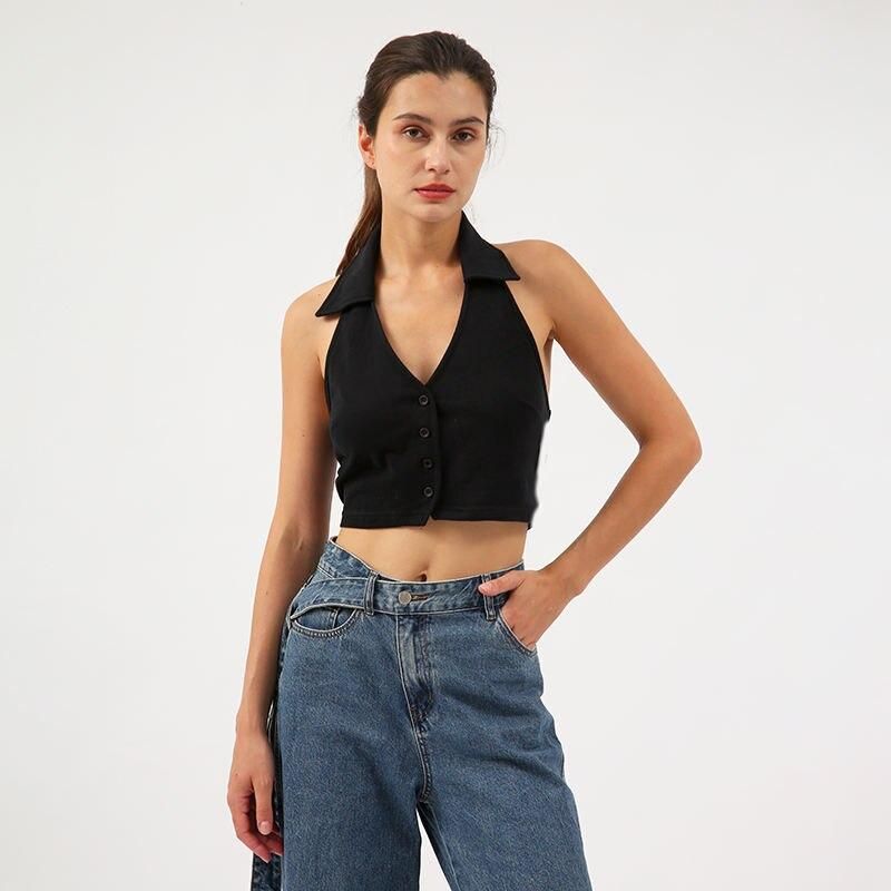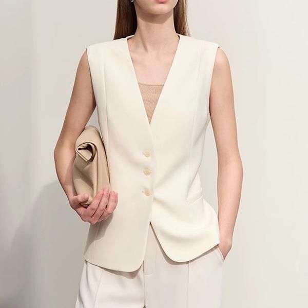 Elegant Sleeveless V-Neck Button Vest for Casual & Daily Wear