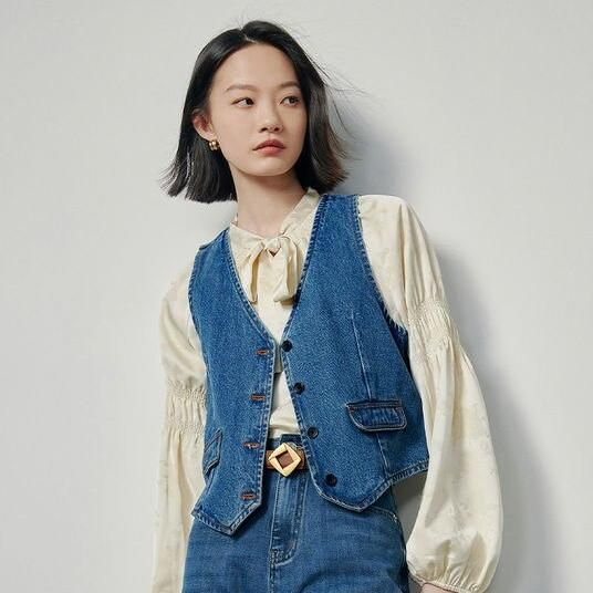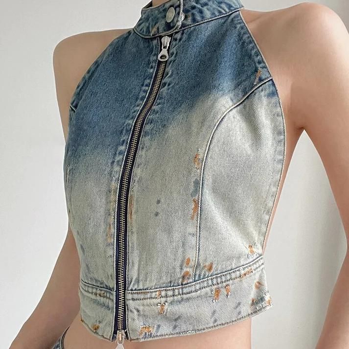 Hit Color Backless Denim Vest