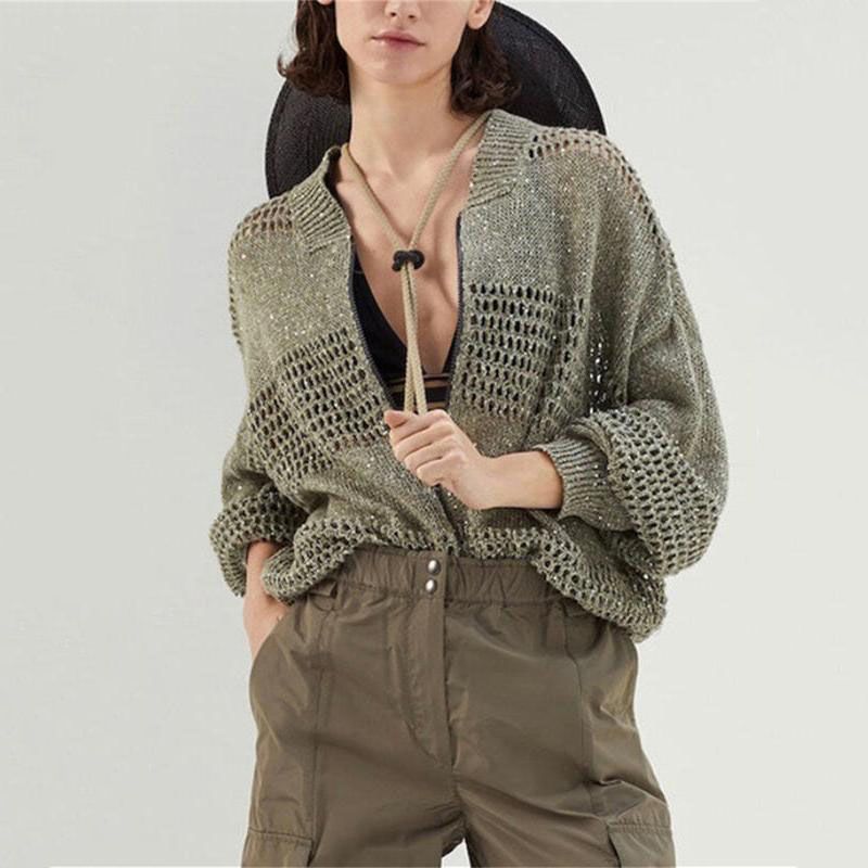 Stylish V-Neck Beaded Chain Women's Cardigan Jacket