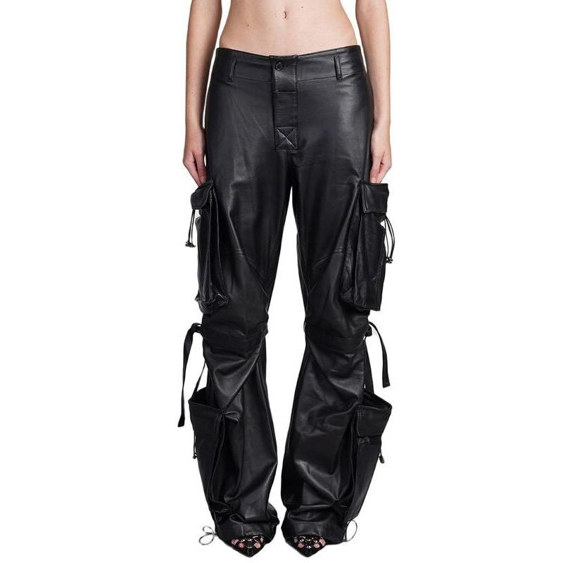 High Waist Solid Patchwork Leather Cargo Pants