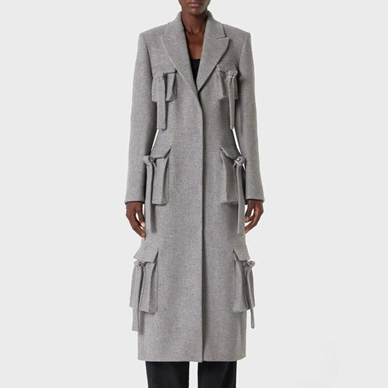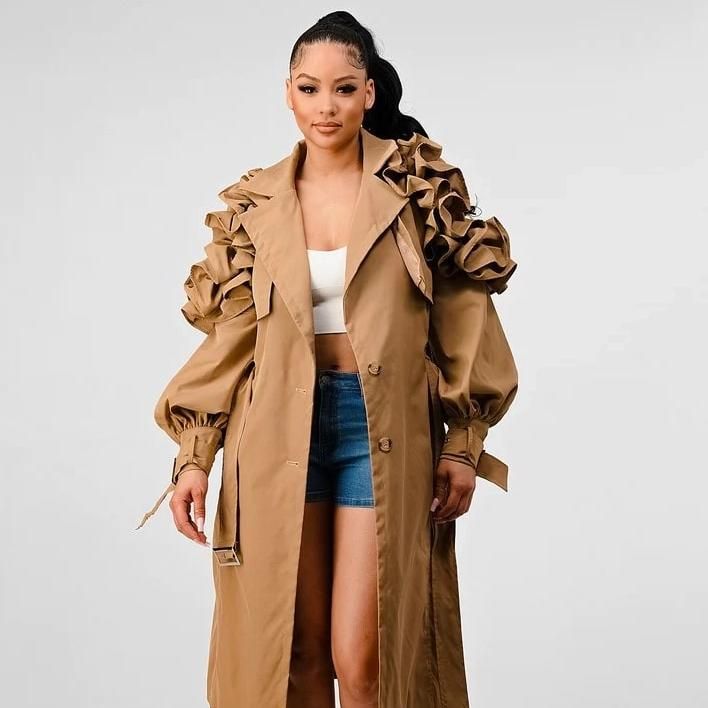 Lapel Long Sleeve Trench Coat