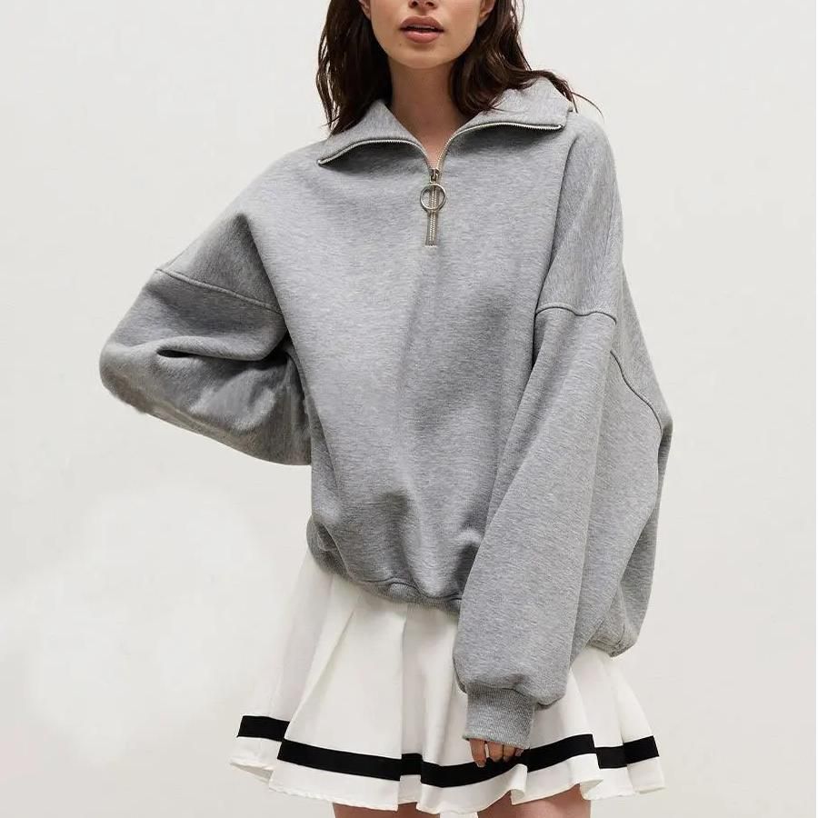 Women's Cotton Blend Oversized Zip-Up Sweatshirt