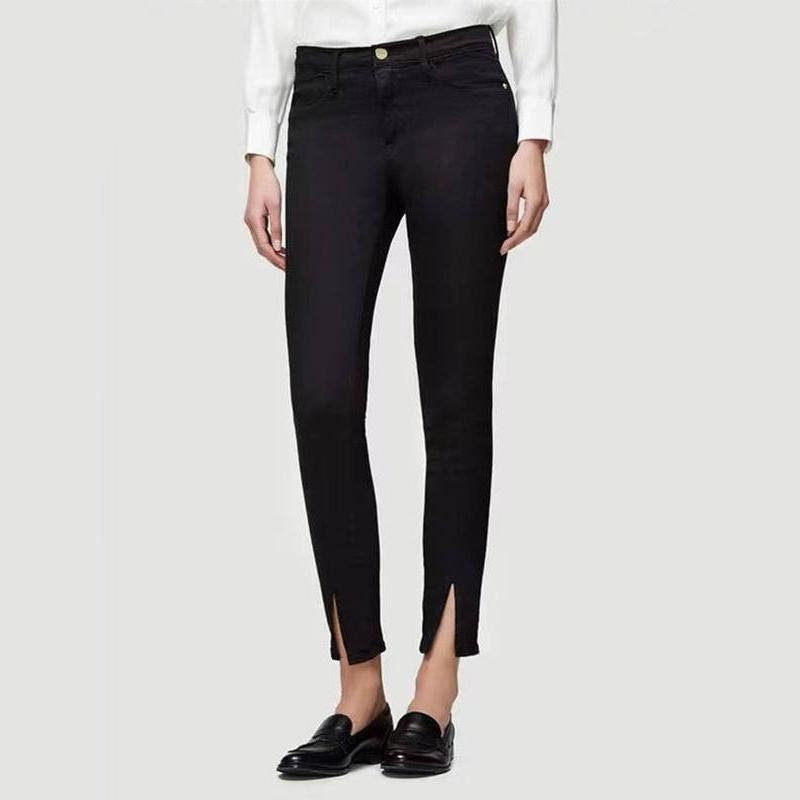 Chic Autumn-Winter Mid Waist Black Stretch Jeans