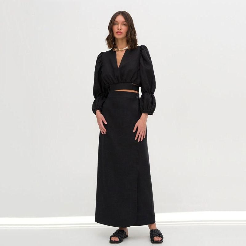 Linen Two-Piece Set with Crop Shirt and High-Waist Skirt