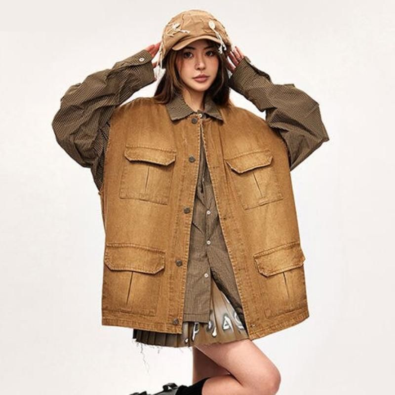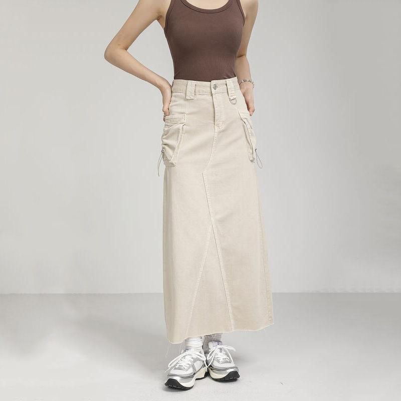 Autumn Vintage High Waist Denim Cargo Skirt with Pockets