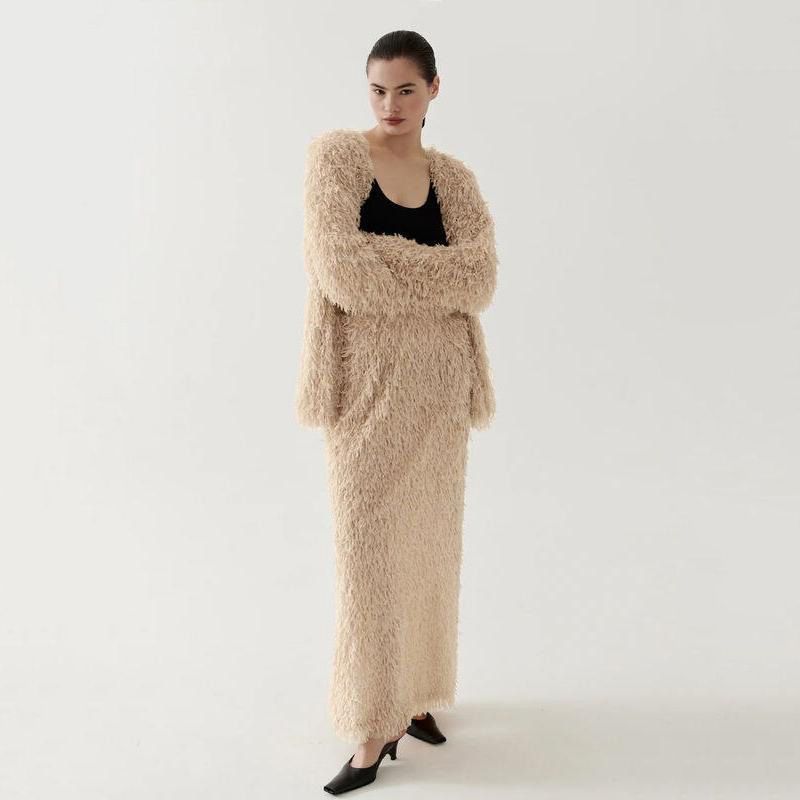Elegant Long Sleeve Top and High-Waist Skirt Set
