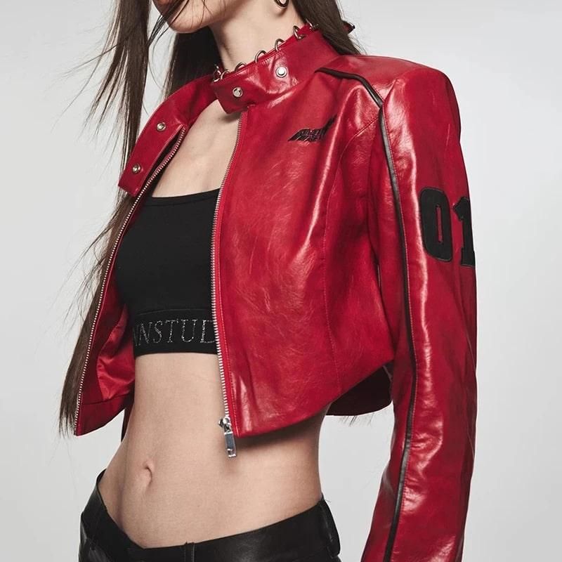 Leather Bomber Cropped Jacket