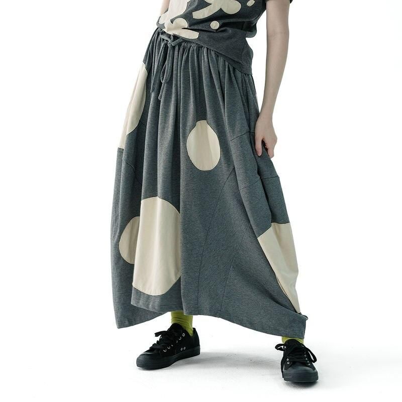 Summer Polka Dot Grey Knit Skirt