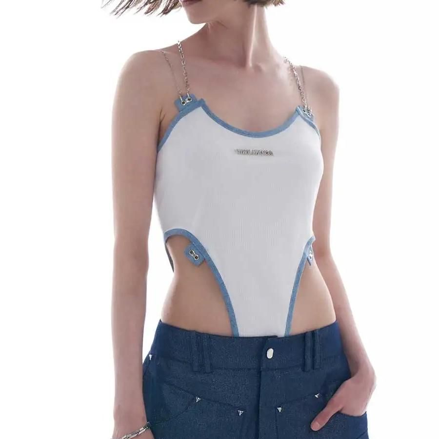 High Cut Sleeveless Backless Bodysuit with Patchwork