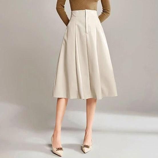 Elegant High Waist Pleated A-Line Skirt