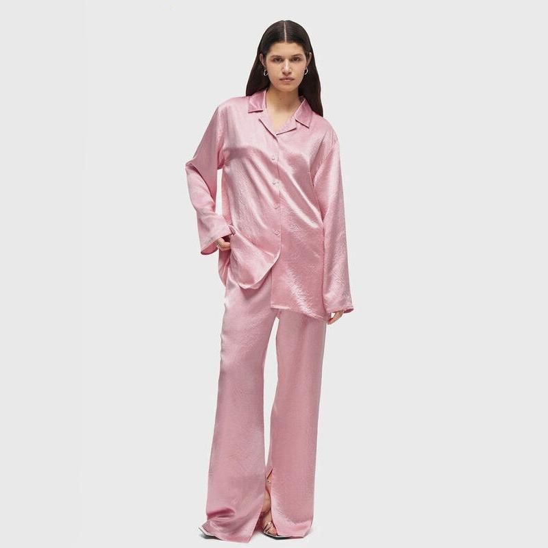 Elegant Two-Piece Set: Casual Long Sleeve Shirt & High-Waist Wide Leg Pants