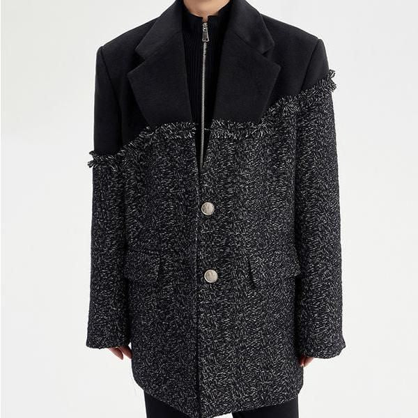 Black Tweed Woolen Coat Parkas
