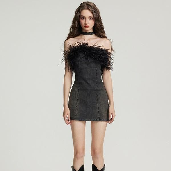 Luxury Feather Tassel Off-Shoulder Mini Dress