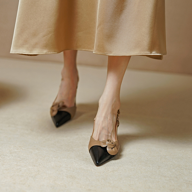 Chic Sheepskin Round Toe Sandals with Chunky Heel and Hollow Out Design